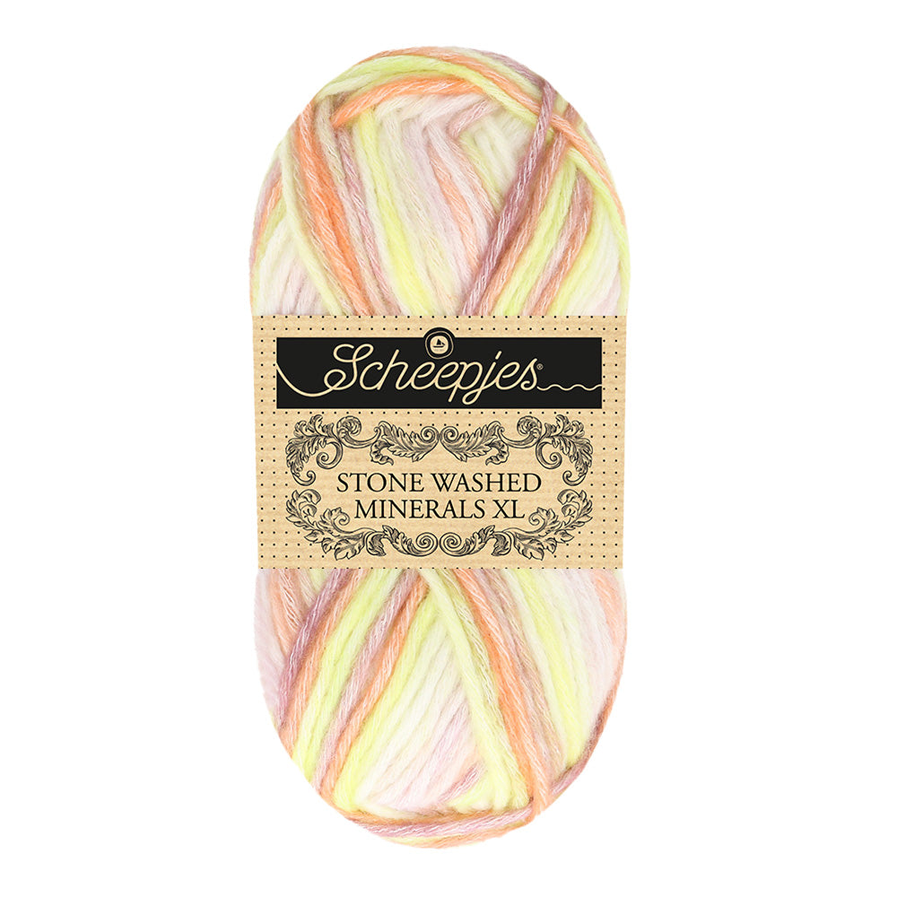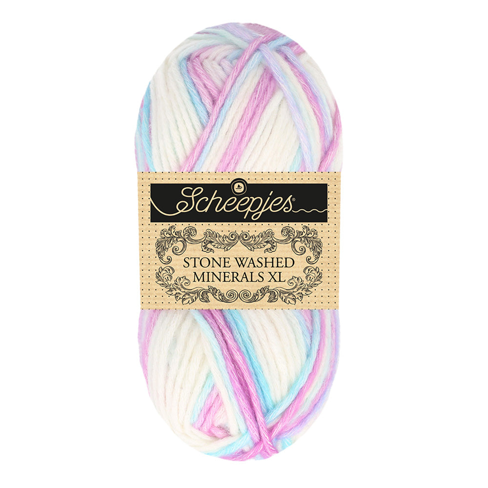 Natural cotton fibre intertwines with a kaleidoscope of hues in acrylic in our new Stone Washed Minerals XL collection. This variegated yarn is set apart from our original Stone Washed XL yarn collection by having multiple contrasting colours through its core.